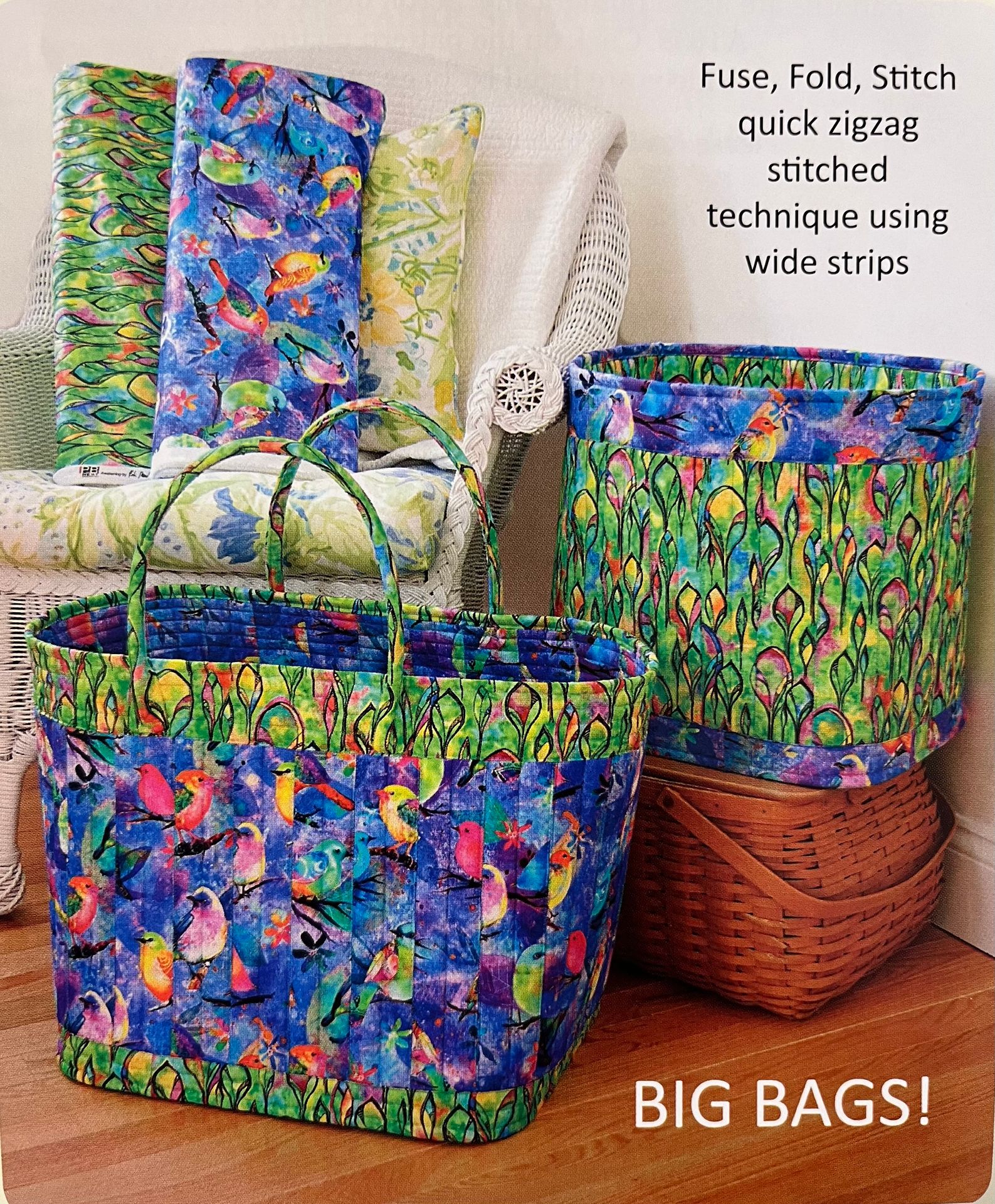 This project features the Fuse, Fold, and Stitch quick zigzag technique. It's such a great project as the tote can be used for many different things and it's lots of fun to make! Coral all your clutter in these big bags.